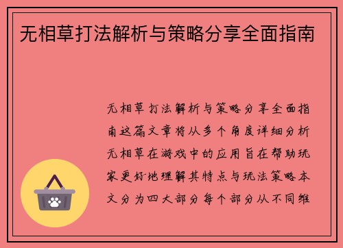 无相草打法解析与策略分享全面指南